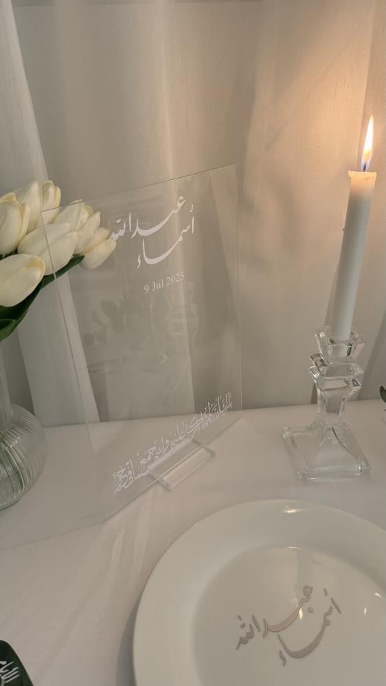 - لوح اكريلك للجوال شفاف مقاس 21*30 + قاعدة للوح